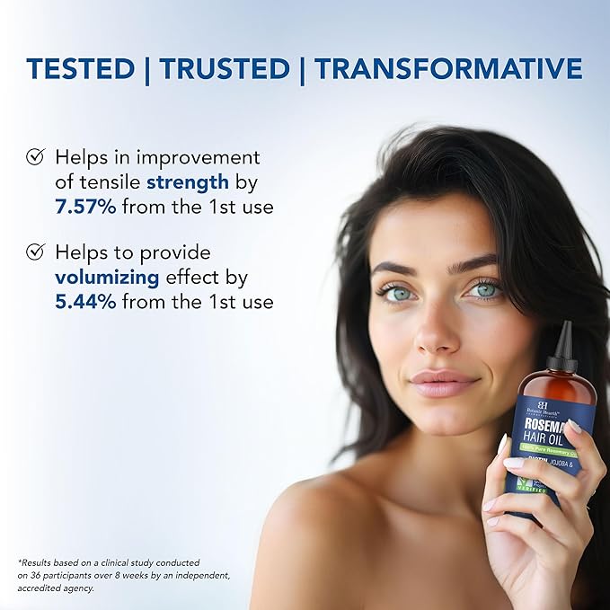 - Helps Promote Hair Growth: The organic rosemary oil for hair growth is infused with ingredients like biotin, jojoba, and castor oils, all of which work together to nourish the scalp and promote stronger, healthier hair