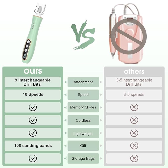 - What you will get: The Electric Nail Drill Kit comes with 9 interchangeable drill bits,100 sanding bands , Type-C charging cable to give your nails a salon-worthy look, this nail kits are the best gift for your nail lovers friends, It's so convenient and you can do a hand or foot care salon privately at home, and everything you need is included.