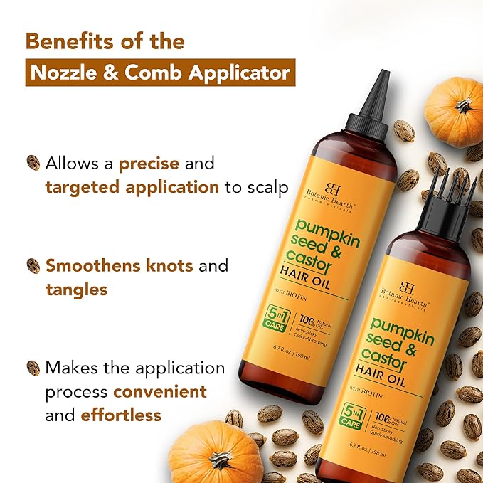 Botanic Hearth Pumpkin Seed & Castor Oil For Hair Growth (6.7 fl oz)| Infused with Pumpkin Seed, Castor, Biotin | Hair Oil Repairs Dry Damaged Hair, Strengthening, Moisturizing, Healthier Hair