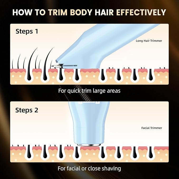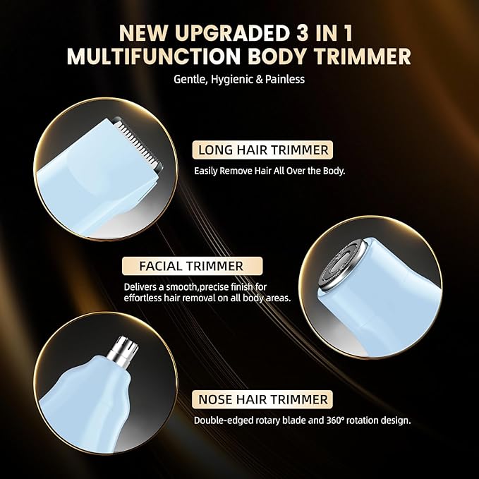 - THOUGHTFUL ACCESSORY SET:Includes 1 Body Hair Trimmer,1 Facial Hair Trimmer Head,1 Nose Hair Trimmer Head,1 Protective Cover,1 USB cable,1 3mm Trimming Comb,1 6mm Trimming Comb,1 x Cleaning Brush,1 x 1 User Manual. If you have any questions about women's electric shaver, please feel free to contact our team of beauty consultants, we will provide you with professional answers within 24 hours. Let you enjoy a hassle-free hair removal experience