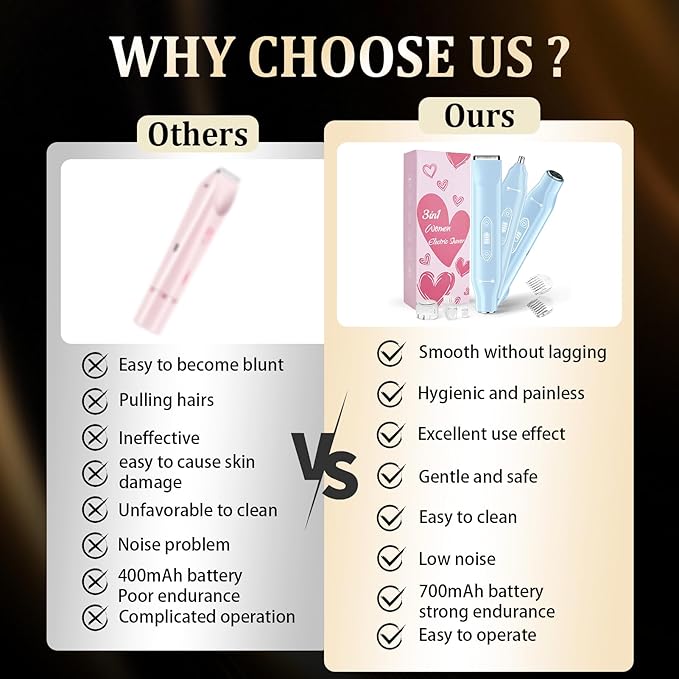 - PAINLESS AND COMFORTABLE EXPERIENCE:Innovative ceramic blade technology with precision motor and hypoallergenic stainless steel material, say goodbye to the pain and discomfort of traditional razors, and achieve a fast, smooth, scratch-free shave, especially for sensitive areas