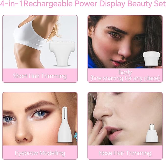 - Versatile Shaving Heads: The Women's Electric Shaver is equipped with four heads for shaving, eyebrow shaping, nose shaving, and hair trimming. It effectively removes unwanted hair from the face, arms, legs, body, bikini line, and underarms, ensuring you look confident and beautiful.