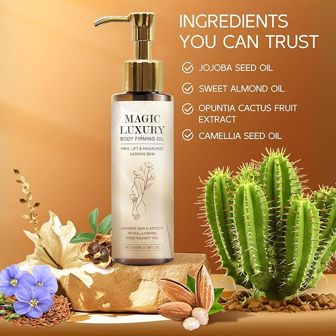 - A Variety of Natural Essential Oil Ratios:A blend of premium natural essential oils, Magic Body Oil deeply moisturizes your skin, providing long-lasting moisture for a soft, firm, glowing complexion.