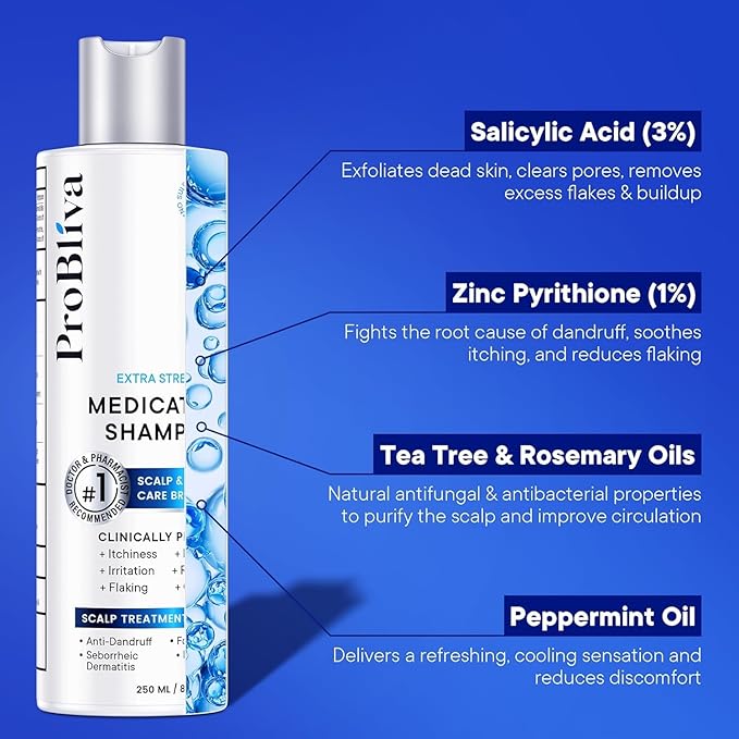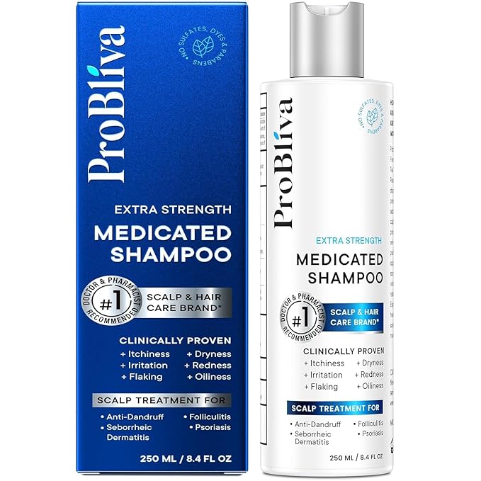 ProBliva Medicated Anti-Fungal & Dandruff Shampoo: Extra Strength Scalp Treatment for Dandruff, Folliculitis, Psoriasis, Seborrheic Dermatitis, Itchy & Dry Scalp